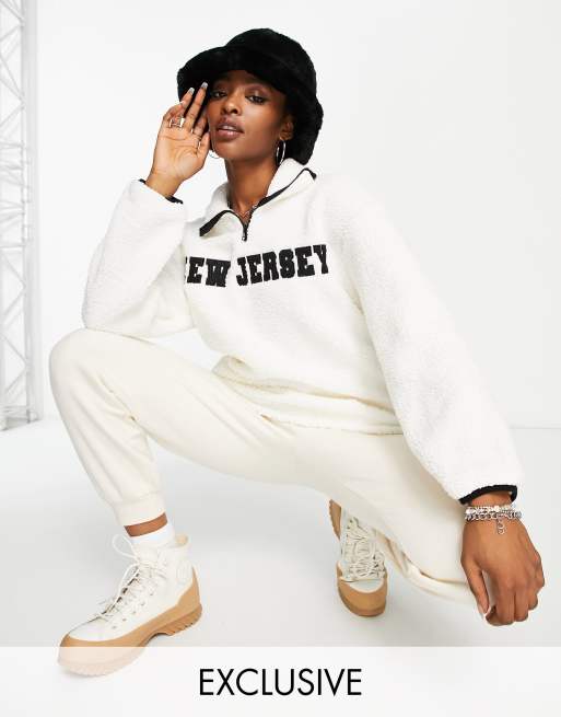 Bershka Polaire en imitation peau de mouton a fermeture eclair devant et slogan style universitaire Blanc Very well made.