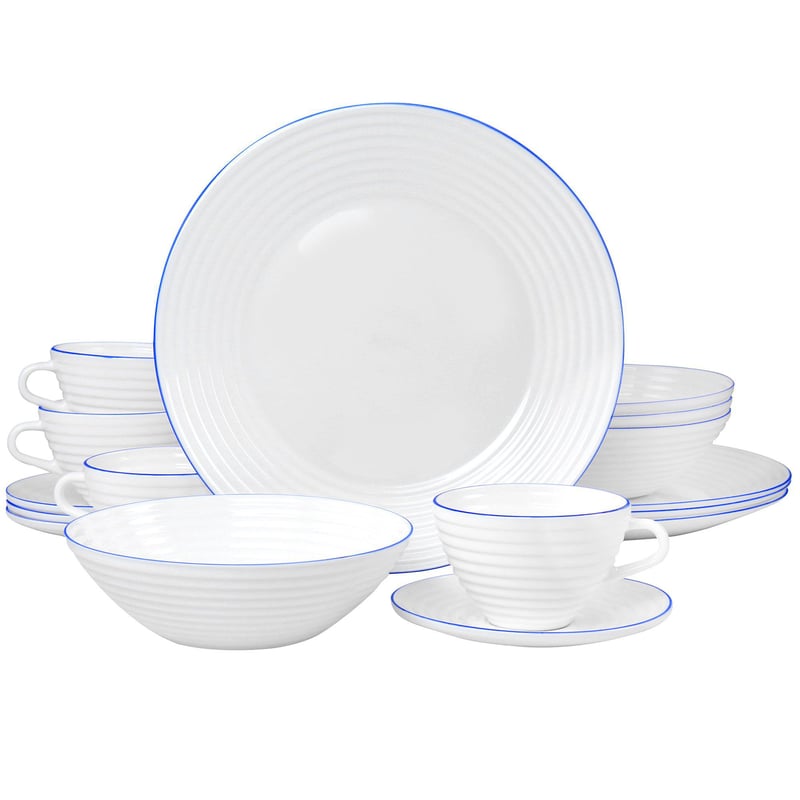 Juego De Vajilla Opal Glass 16 Piezas Veranda Blanco con borde Azul Oster OSTER falabella Very well made.