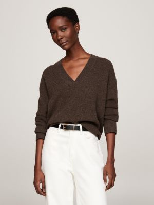 Relaxed fit trui van wol en kasjmier met V hals Bruin Tommy Hilfiger Very well made.
