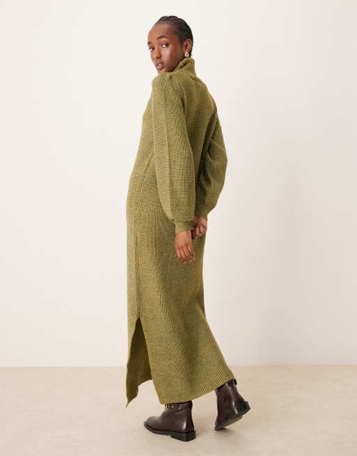 YAS Gebreide jurk met col en lange mouwen in olijfgroen Very well made.