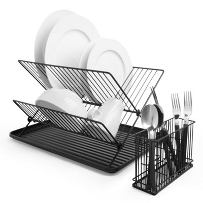 VonShef Dish Drainer Rack Foldable Space Saving Kitchen Dish Drying Rack w Drip Tray and Cutlery Holder Matt Black Dish Rack DIY at B Q Very well made.
