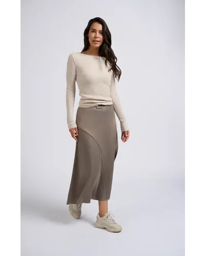 YAYA Jupe A line en satin avec couture asymetrique et ceinture Very well made.