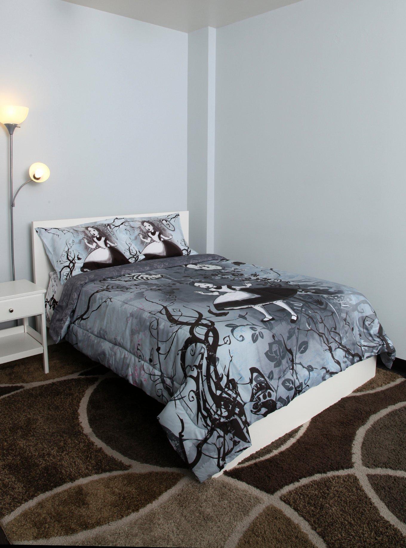 Disney Alice In Wonderland Black White Full Queen Comforter Hot Topic Very well made.
