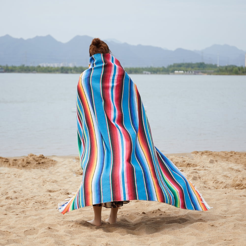 Mexican Indian Style Manual Rainbow Color Hanging Tapestry Beach Picnic Blanket Blue 150x200cm tassel Very well made.