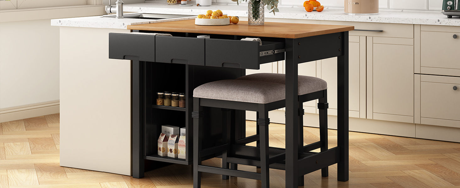 3 Piece Kitchen Island Dining Table Set With 1 Rustic Table 2 Upholstered Stools Furniture Kit For Dining Living Room Kitchen Very well made.