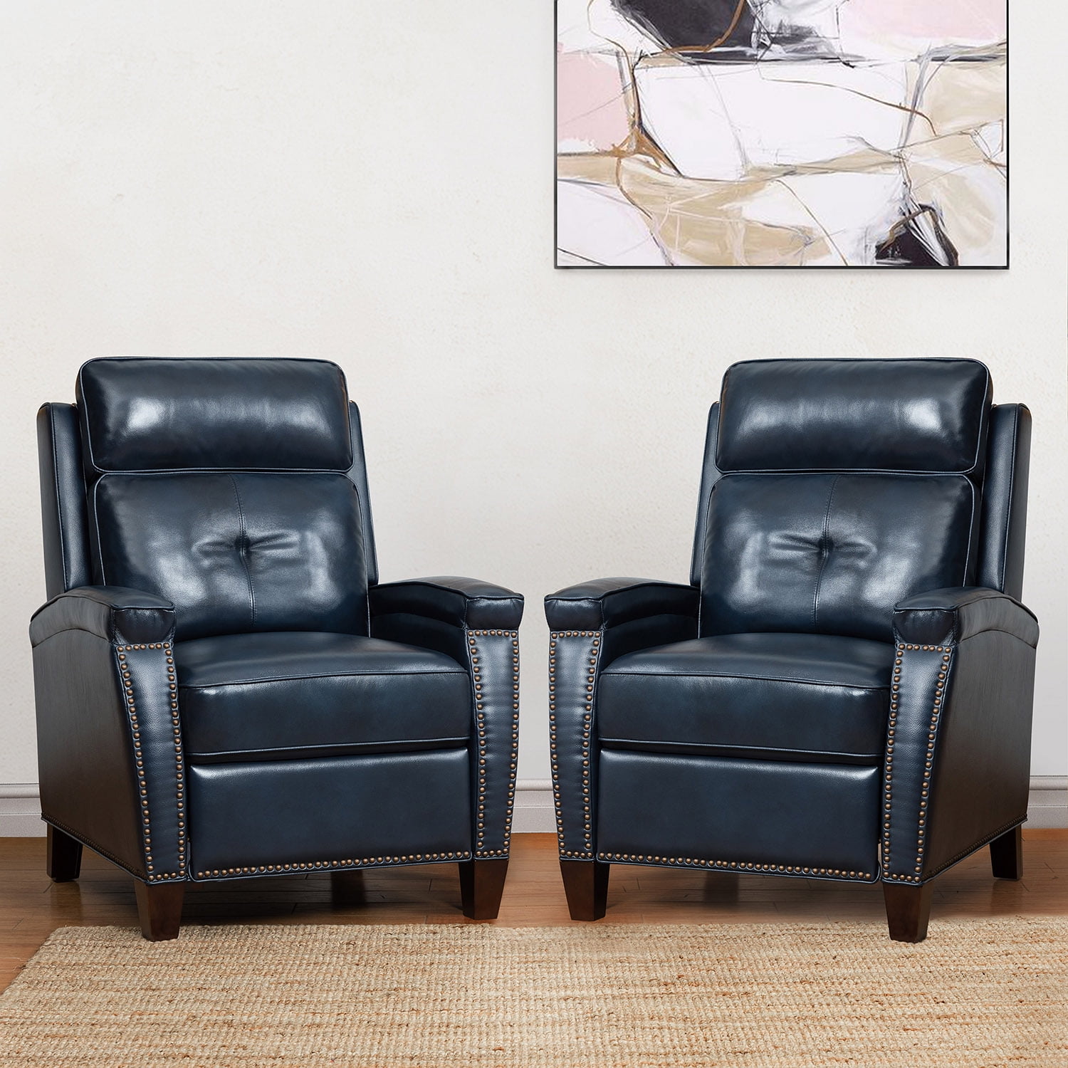 14 Karat Home Genuine Leather Recliner Cigar Chair Birch Wood Legs Nailhead Trim Living Room Bedroom Set of 2 Navy Walmart Very well made.