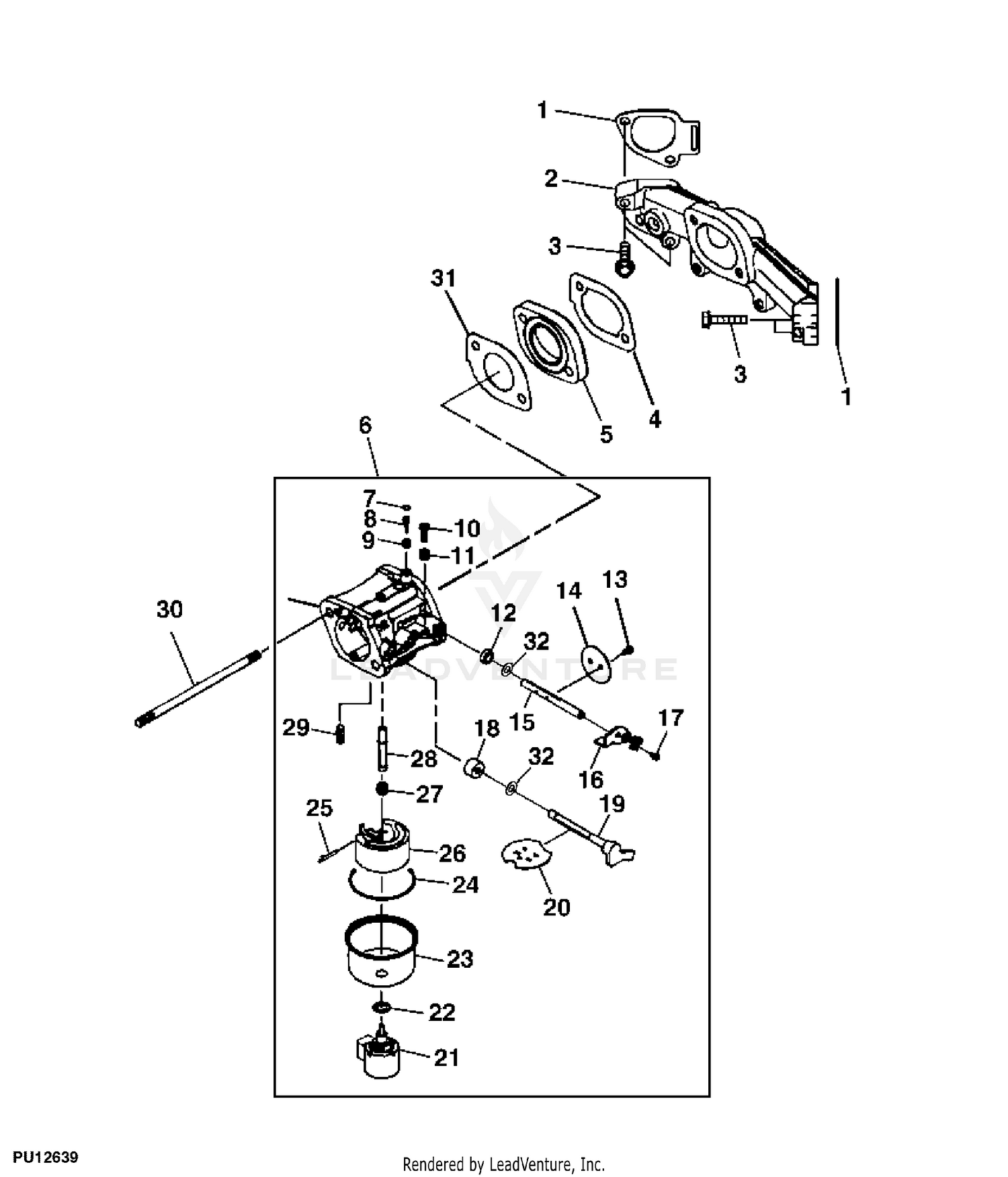 John Deere X324 Tractor Select Series 42 IN Mower Deck PC9522 Carburetor Intake Manifold FS651V Fuel and Air Very well made.