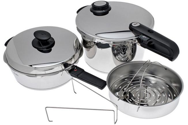 Fissler Vitavit Premium set pressure cooker 8L with quick roaster 4L Advantageously shopping at Knivesandtools Very well made.