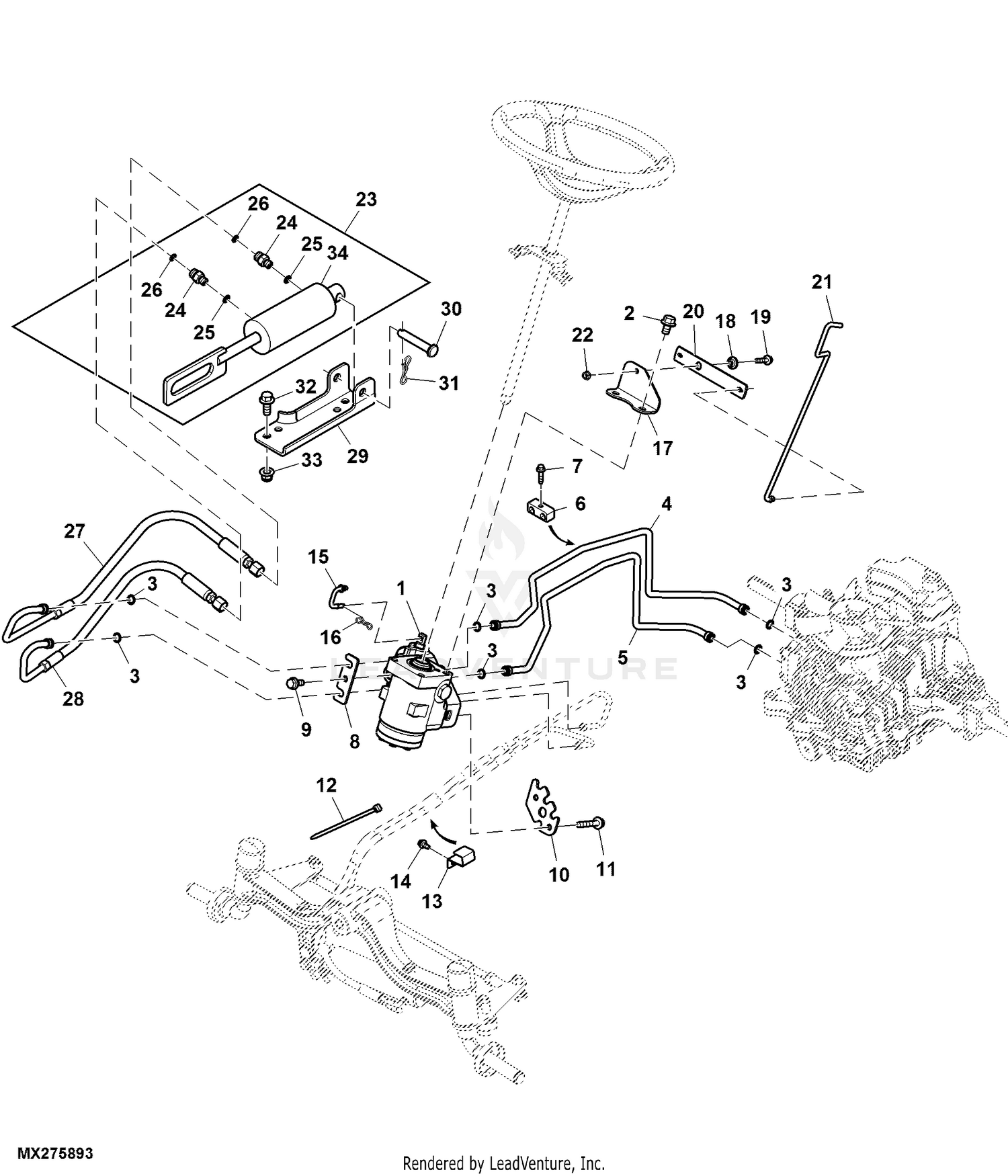 John Deere X580 Lawn Garden Tractor X580 54 inch Mower Deck PC12716 Hydraulic Components Steering System Hydraulics Very well made.