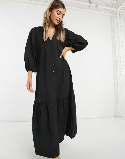 ASOS DESIGN Robe chemise longue boutonnee et texturee a smocks Noir Very well made.