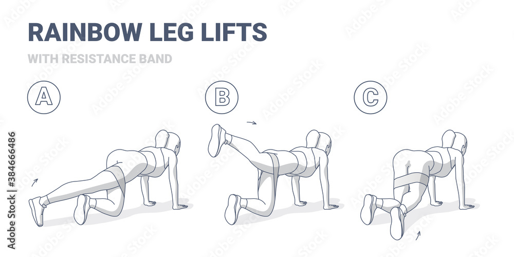 Rainbow Legs Lifts with Resistance Band Woman Home Workout Exercise Guidance Illustration Concept. Stock Vector Adobe Stock Very well made.