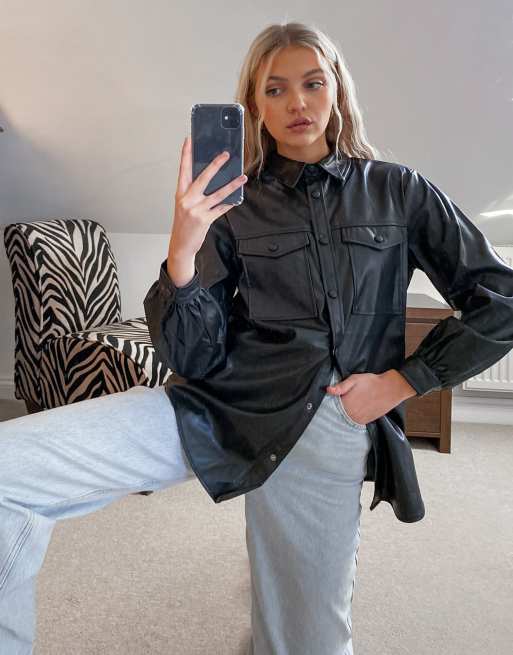 New Look Chemise utilitaire en similicuir Noir Very well made.
