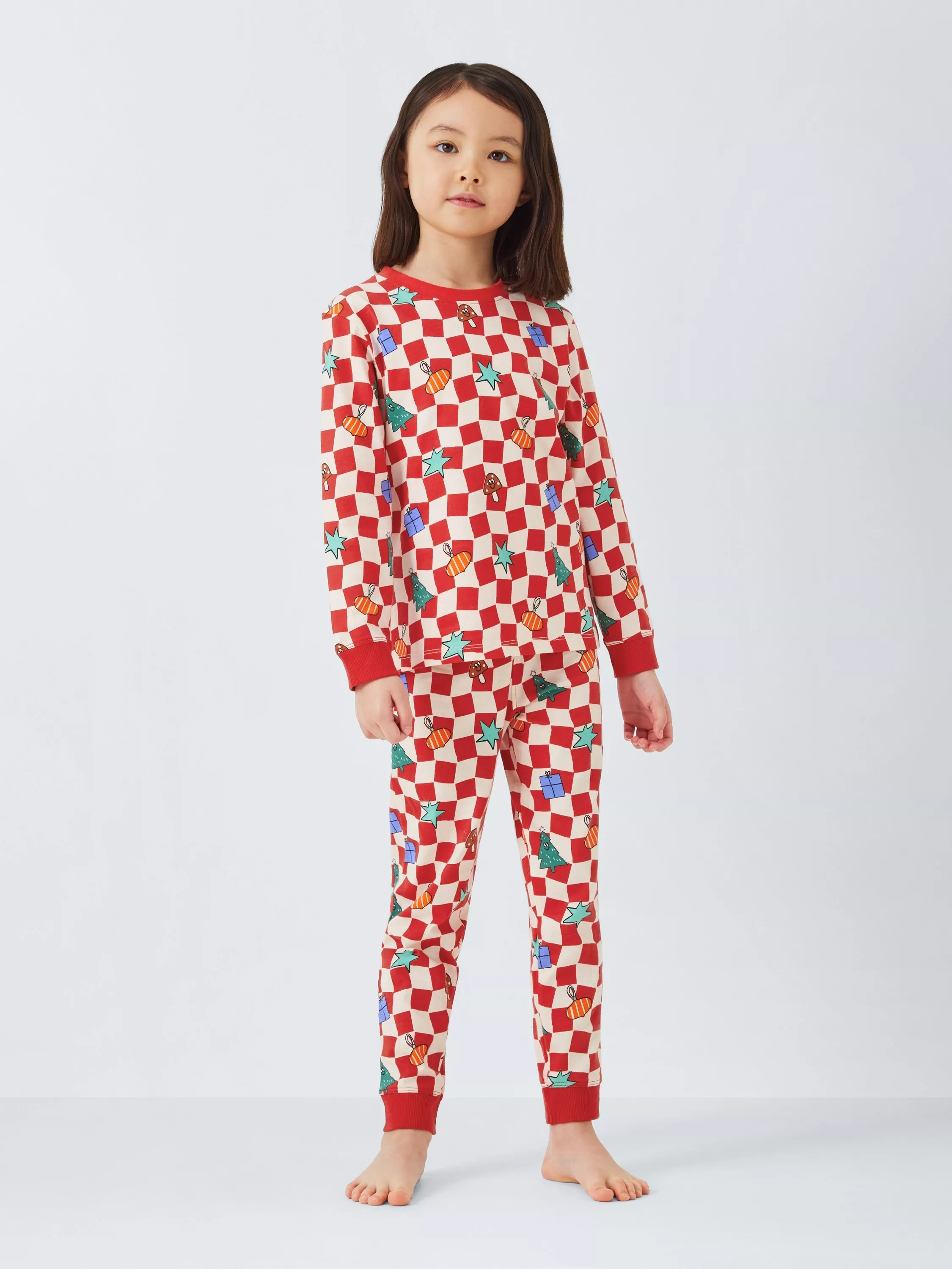 John Lewis ANYDAY Kids Christmas Checkerboard Pyjamas Red Very well made.