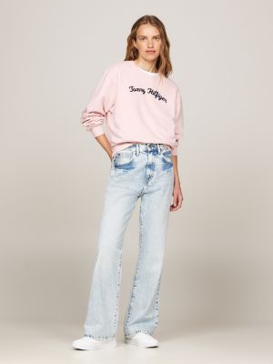 Logo Embroidery Crew Neck Jumper Pink Tommy Hilfiger Very well made.