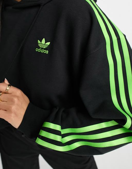 adidas Originals 3 stripe cropped sweatshirt in black and lime Very well made.