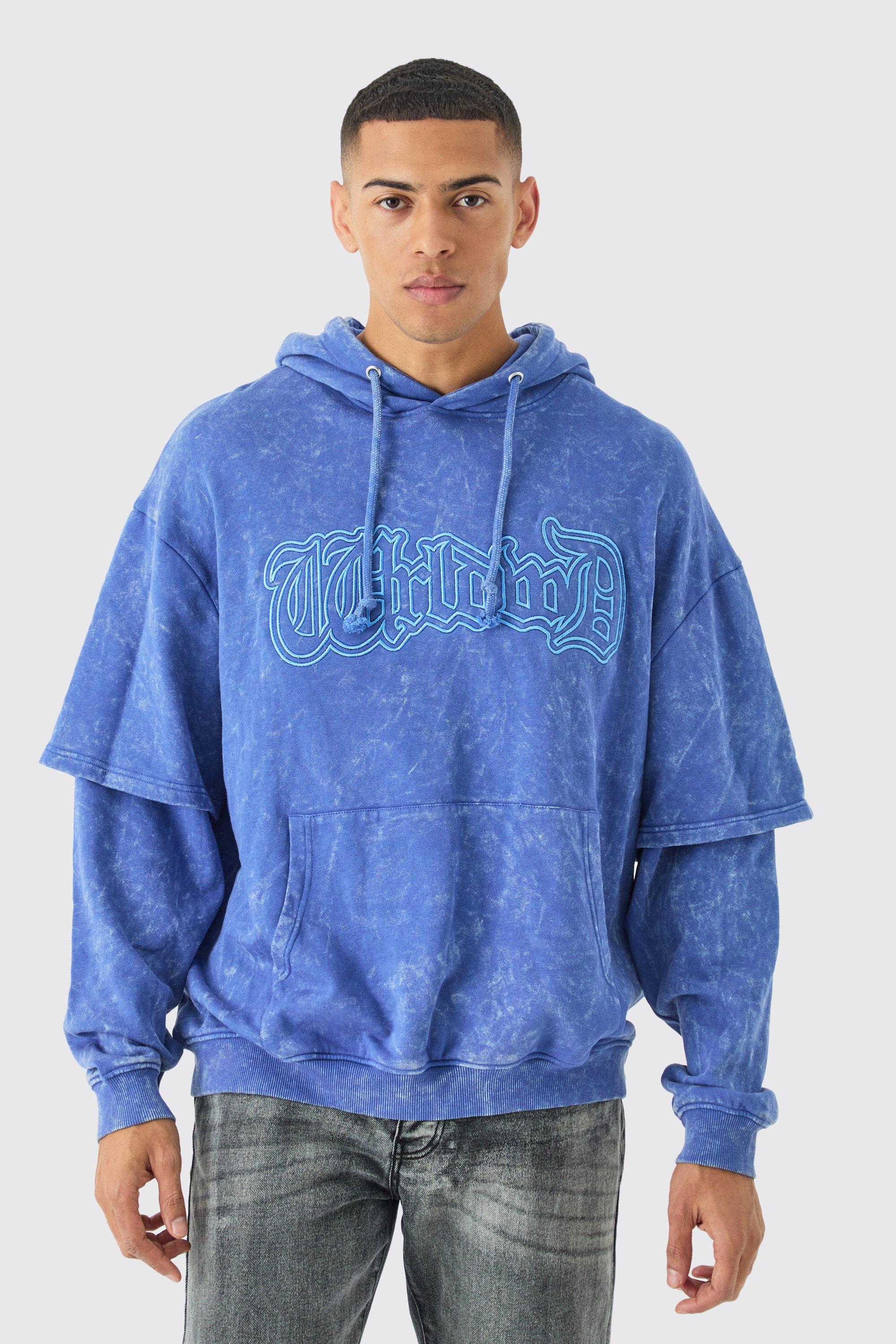 Oversized Faux Layer Acid Wash Embroidered Hoodie Very well made.