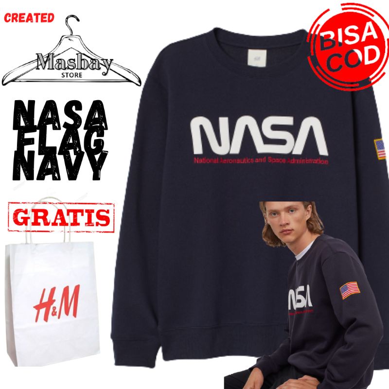Jual Crewneck HM Nasa Flag logo bordir Navy Putih ful tag Shopee Indonesia Very well made.