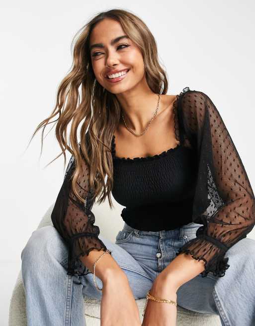 Black Balloon Sleeve Shirred Bardot Top Very well made.