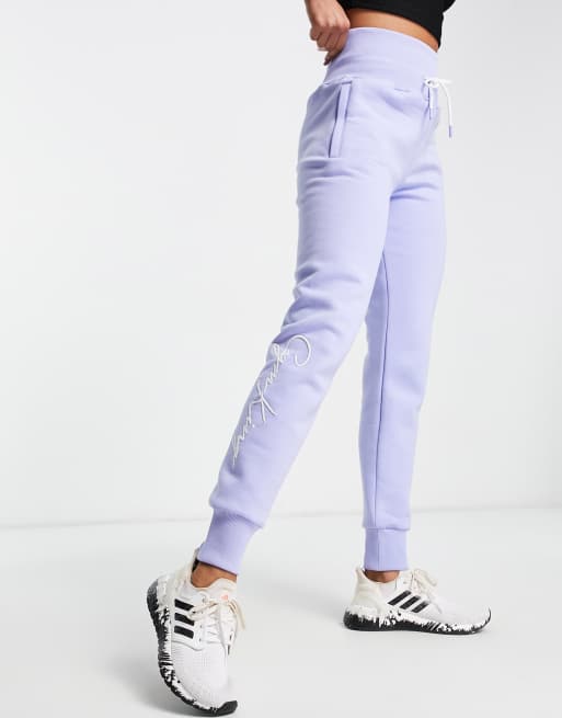 Gym King Sky script high waisted joggers in mink Very well made.