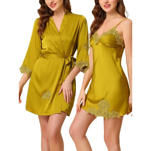 Cheibear Women s Satin Silky Lounge Nightdress With Robe 2 Pcs Pajama Sets Black Large Target Very well made.