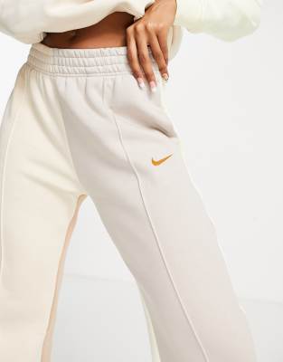 Nike Metallic Swoosh colour block joggers in cream and grey neutrals Very well made.