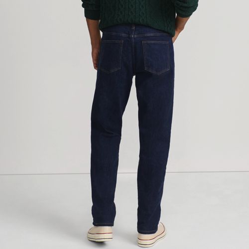 Men s Traditional Fit Flannel Lined Stretch Jeans Lands End Very well made.