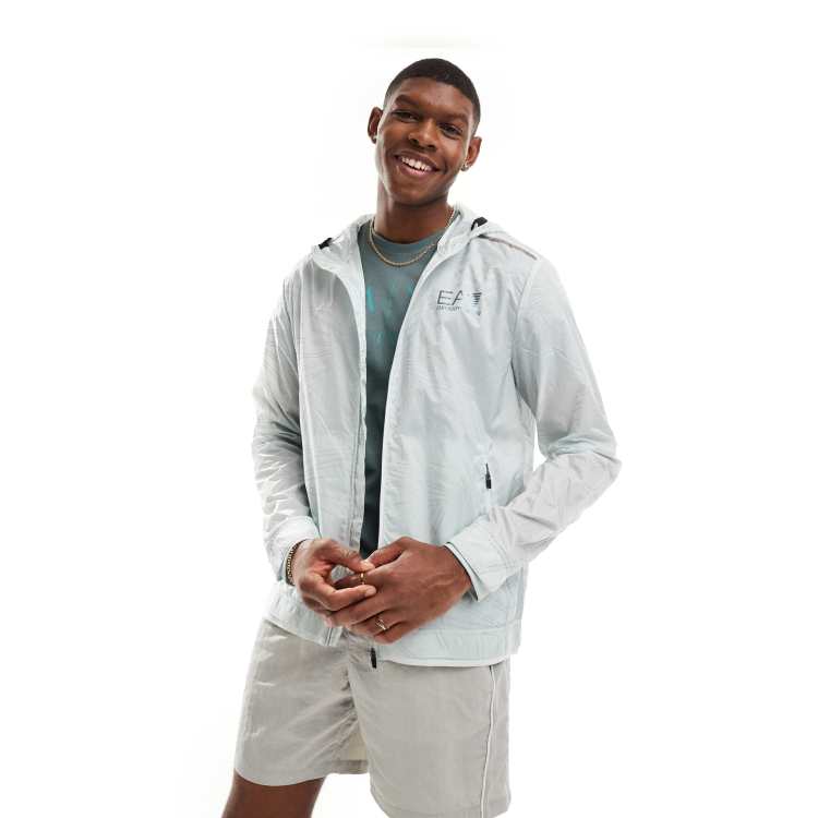 Armani EA7 Veste coupe vent a capuche avec logo et imprime geometrique sur l ensemble Bleu clair transparent Very well made.