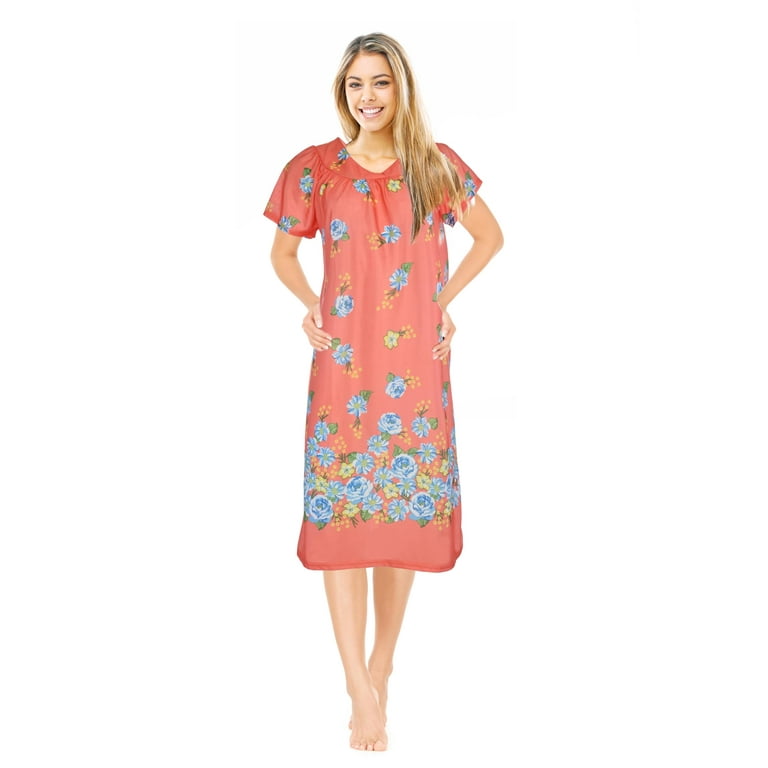 MAXMODA Nightgowns for Women Short Sleeve Mumu Dress Floral Sleepwear Pleated Patio Dress with Pockets S XXXL Blue Floral X Large Amazon Fashion Very well made.