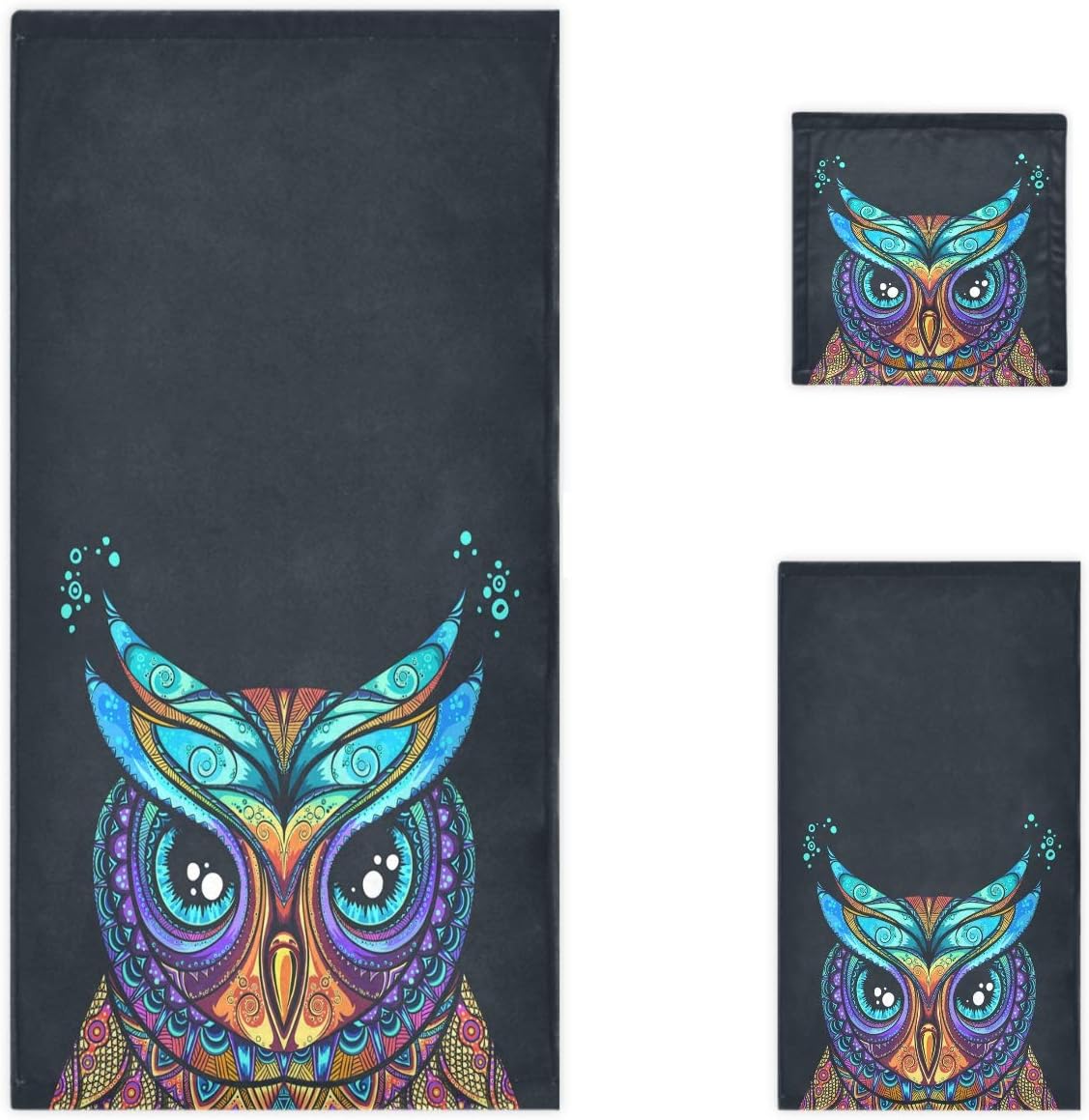 GZHJMY Chic Floral Tribal Owl Tatoo Pattern Soft Decorative Set of 3 Towels 1 Bath Towel 1 Hand Towel 1 Washcloth Multipurpose for Bathroom Hotel Very well made.