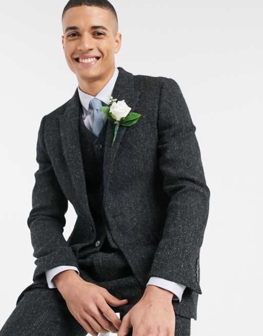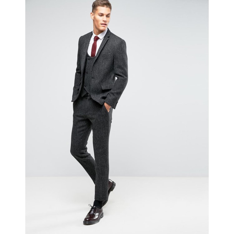ASOS DESIGN slim suit in 100 wool Harris Tweed in charcoal herringbone ASOS Very well made.