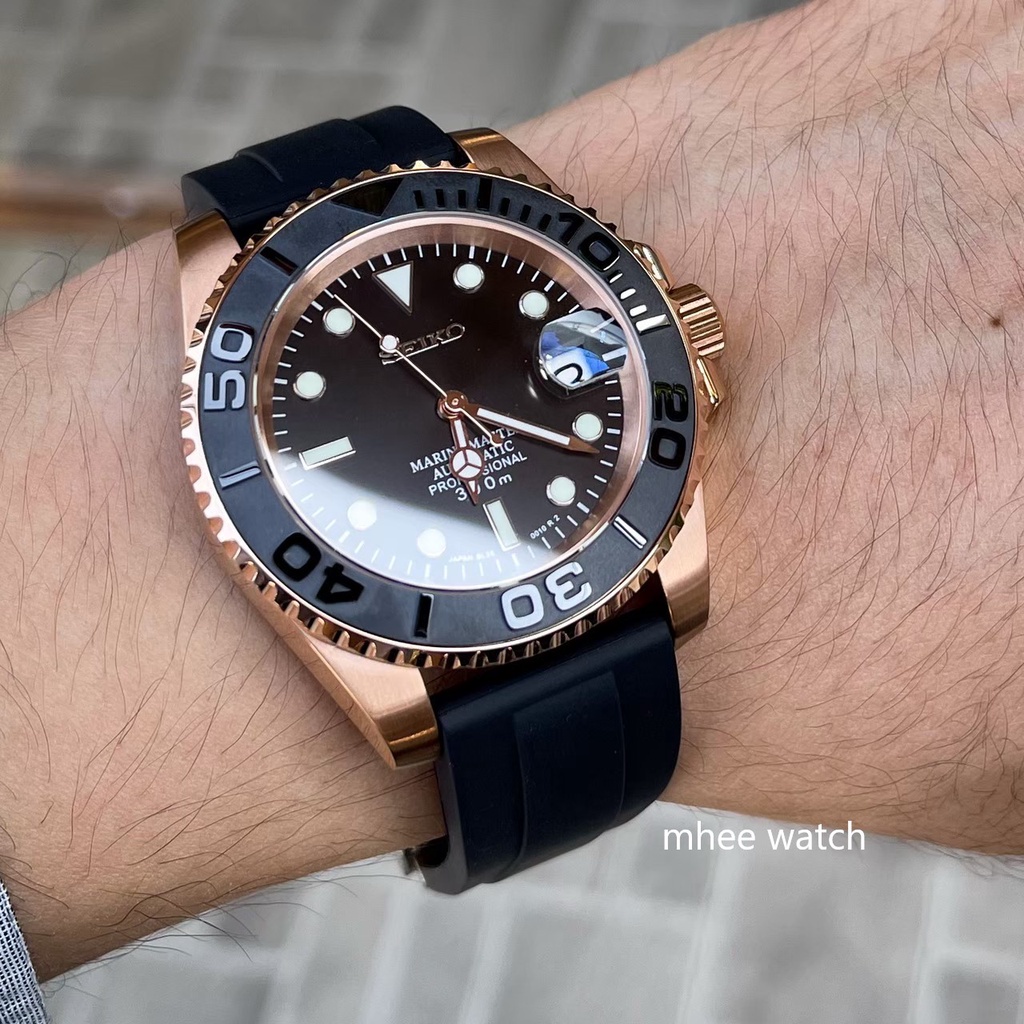 Seiko Mod Yacht Master Model Choco Rosegold Rubber Straps Good Quality mheewatchshop Inspired by LnwShop Very well made.