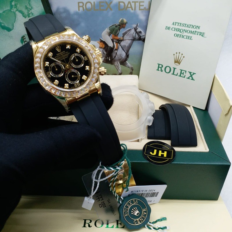Jual Jam Pria Rolex Daytona Diamond Black Automatic Swiss JH Factory Clonning Shopee Indonesia Very well made.