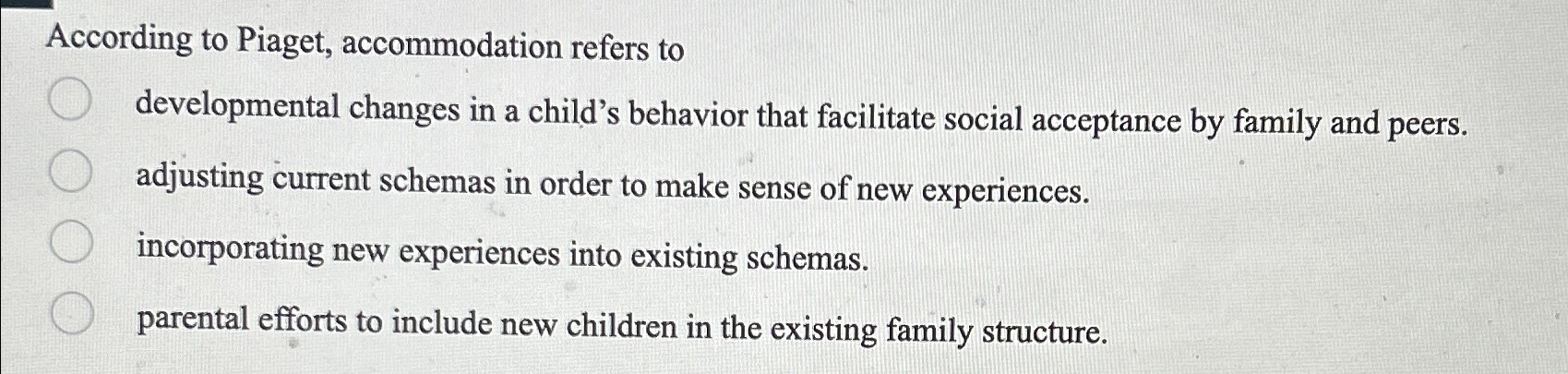 Solved According to Piaget accommodation refers to Chegg Very well made.