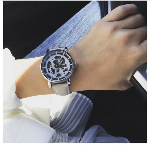 Fossil Boyfriend Automatic Skeleton Silver Dial White Leather Strap Watch for Women Very well made.