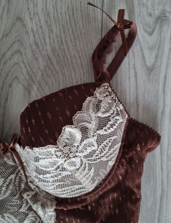 Guepiere brune et beige bonnet B taille 36 38 avec string Acheter sur Ricardo Very well made.