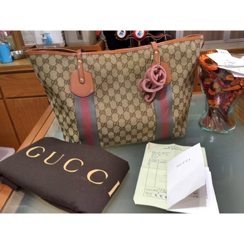 GUCCI 211970 GG BROWN CANVAS WITH CHARM TOTE BAG 237044208 Very well made.