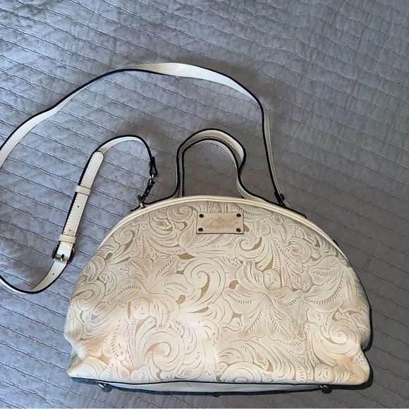 Patricia Nash Bags Patricia Nash Fiora Dome Satchel Bag Tooled Leather Cream Poshmark Very well made.
