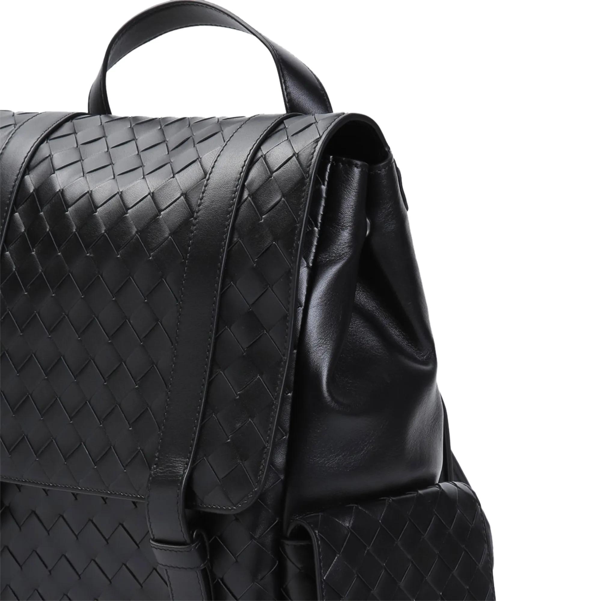 Bottega Veneta Intrecciato Leather Backpack Black Rucksack Very well made.