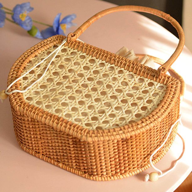 Women Straw Bags Female Bamboo Summer Beach Weave Handbag Lady Handmade Vintage Wood Handle Bag Travel Knitted Totes Bags Amazon Clothing Shoes Very well made.