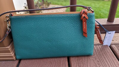 Dooney Bourke Leaf Green Tech Top Zip Pouch Clutch Wristlet Wallet Very well made.