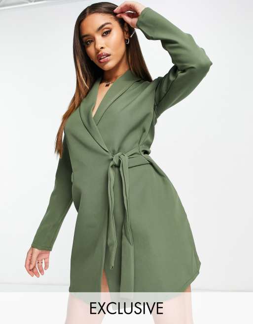Rebellious Fashion Exclusivite Robe blazer nouee sur le devant Kaki Very well made.
