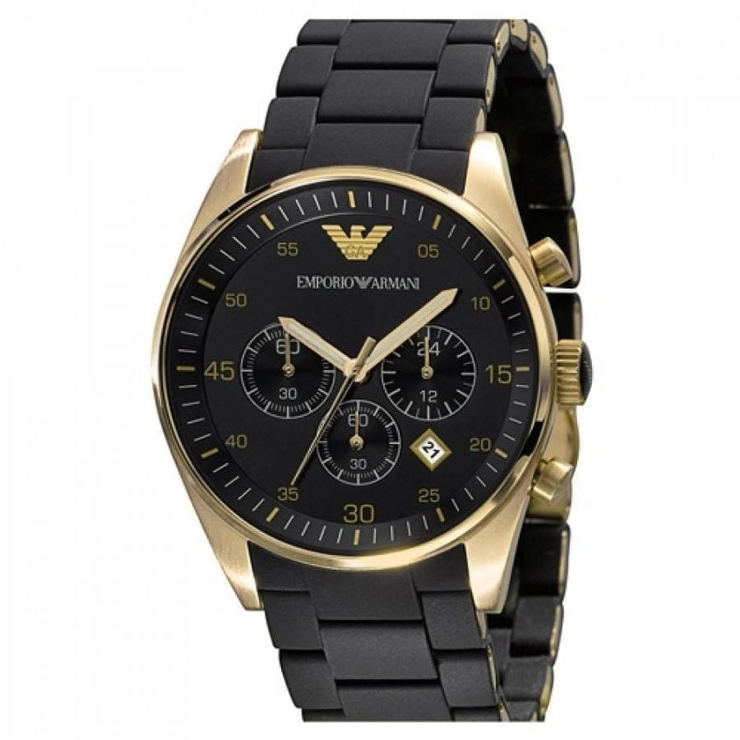Emporio Armani Reloj Hombre Movimiento cronografo de cuarzo 46mm Caja de acero inoxidable dorado con correa de piel AR1917 Negro y tono dorado Amazon.es Moda Very well made.