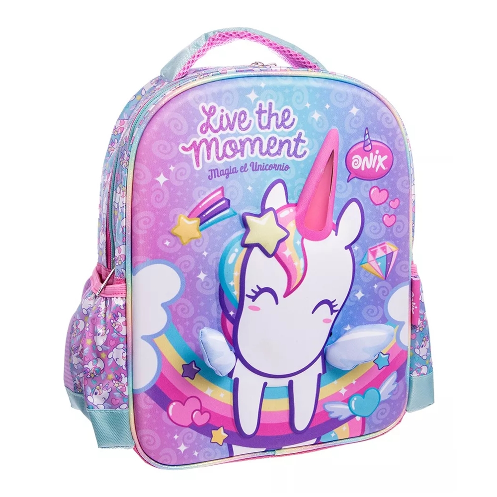 MOCHILA ESPALDA UNICORNIO 14 CON RELIEVE Ideal Jardin Doble Comparti Very well made.