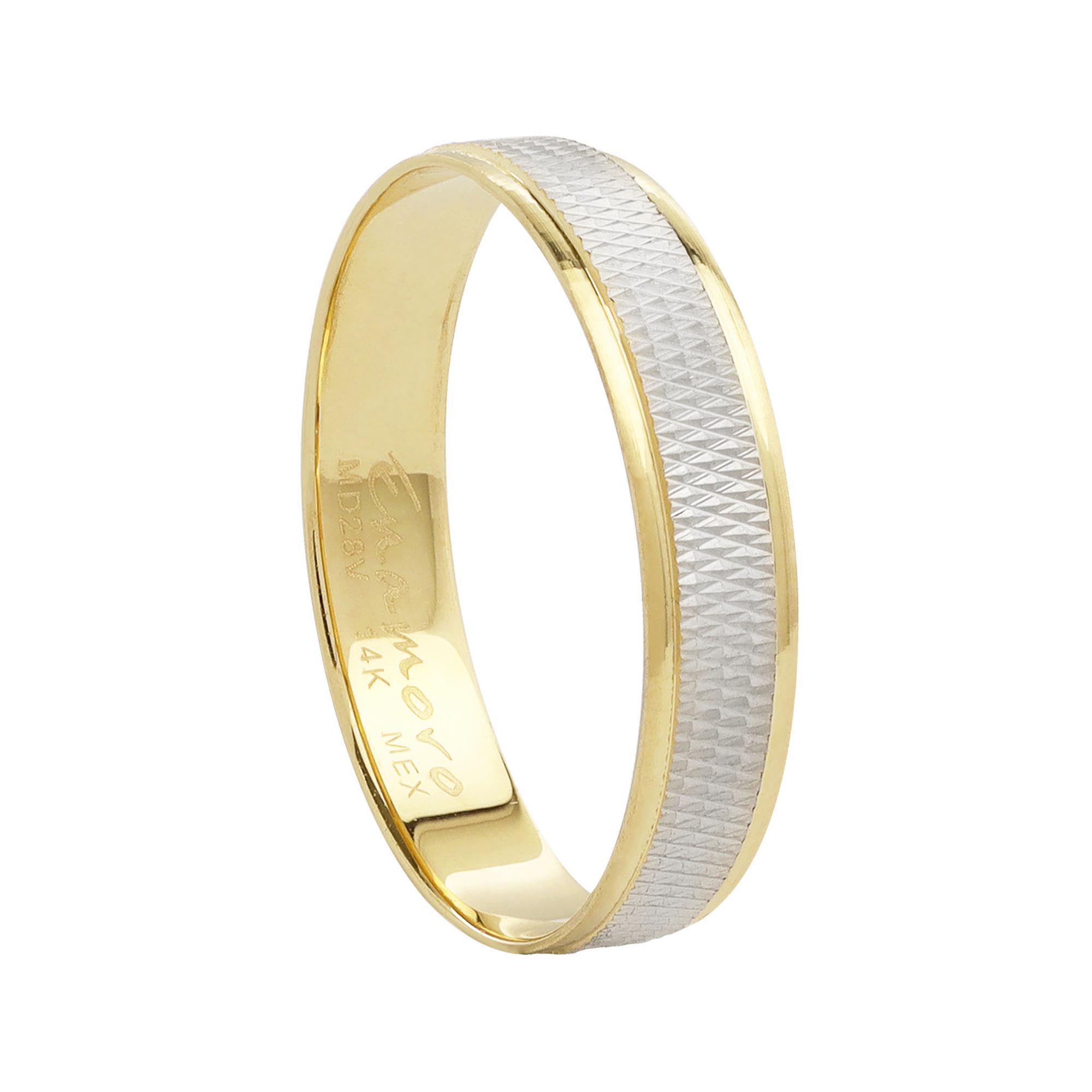ARGOLLA DE MATRIMONIO ORO 14K 4MM DIAMANTADA DOS OROS Very well made.