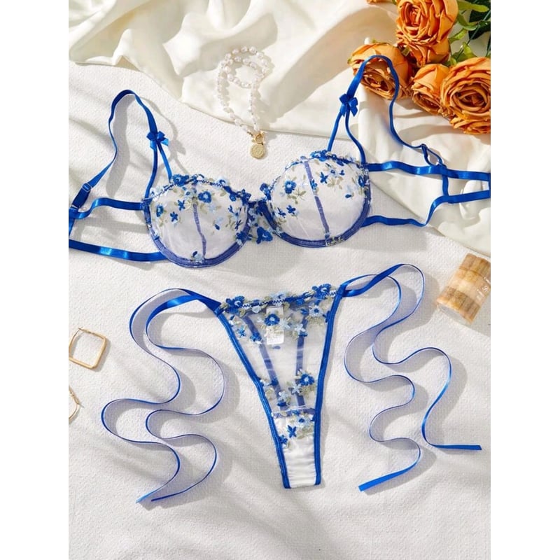 GENERICO Set de Ropa Interior Lenceria Flores Transparencia Azul 2 Piezas falabella Very well made.