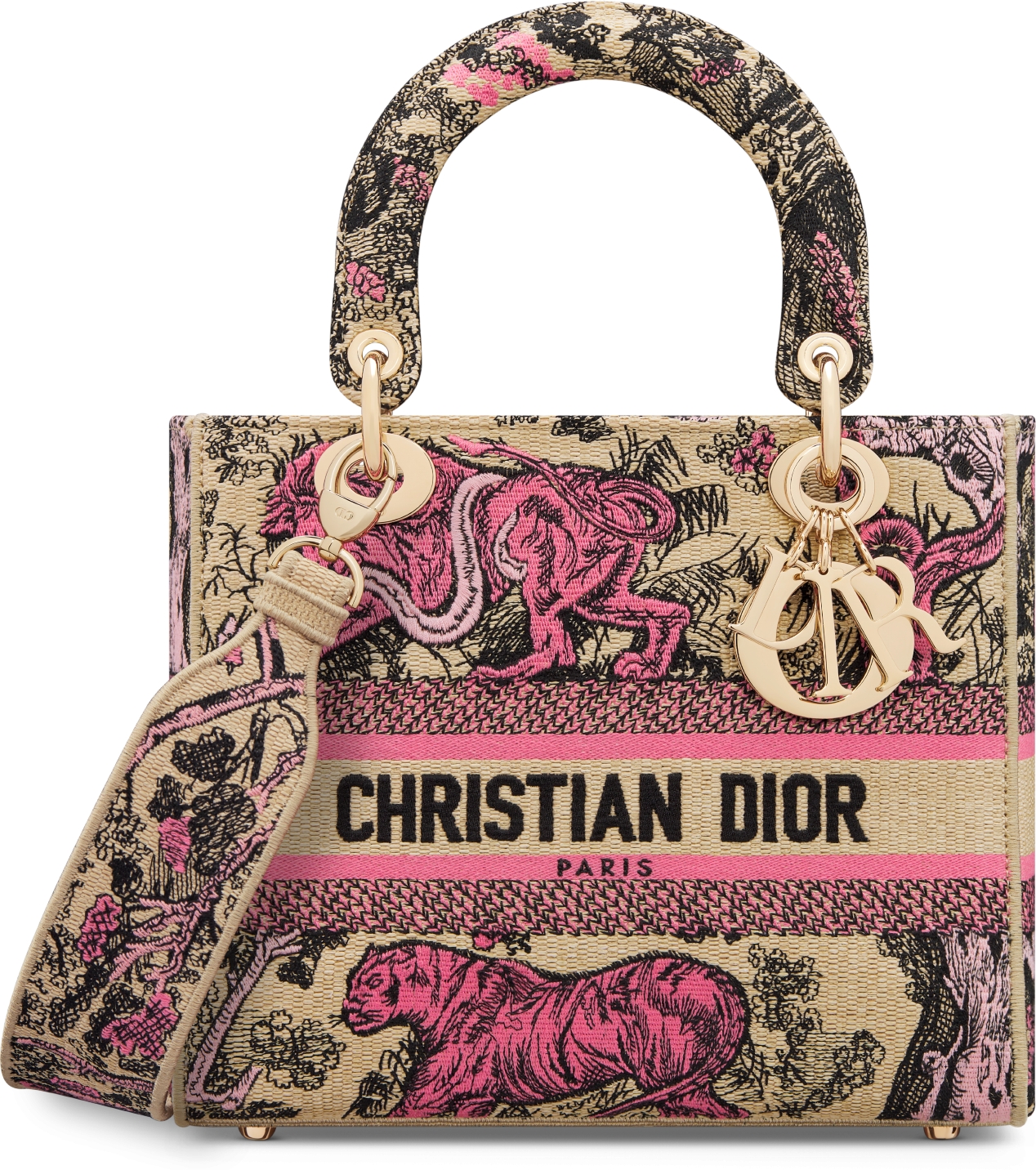 Middelgrote Dioriviera Lady D Lite tas Raffia met candy roze Toile de Jouy Sauvage borduursel DIOR Very well made.