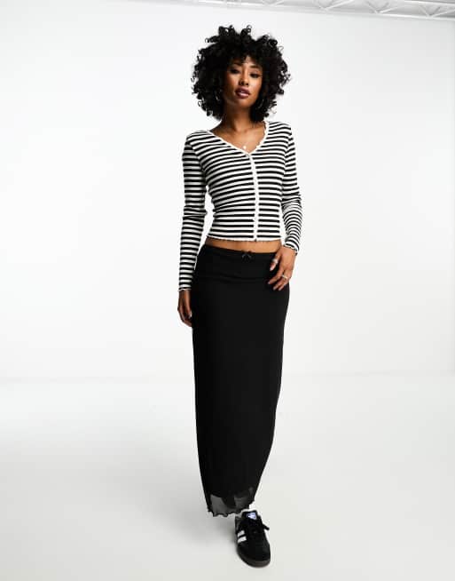 Only Gestreepte top met V hals geschulpte rand en knoopsluiting in zwart en wit ASOS Very well made.