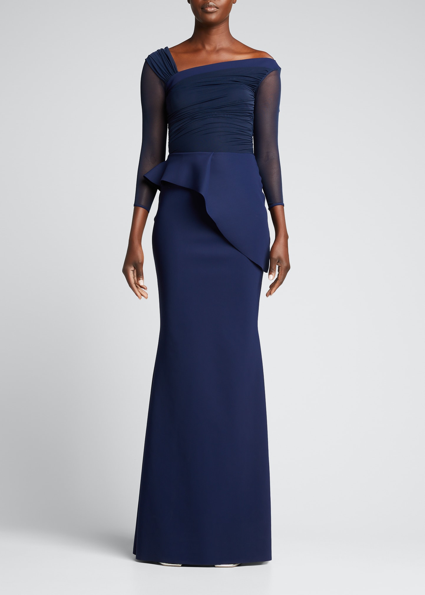Chiara Boni La Petite Robe Ruched Illusion Sleeve Column Gown Smart Closet Very well made.