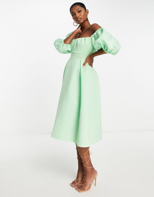 ASOS DESIGN Robe patineuse mi longue a manches bouffantes et ourlet plongeant Vert pomme ASOS Very well made.