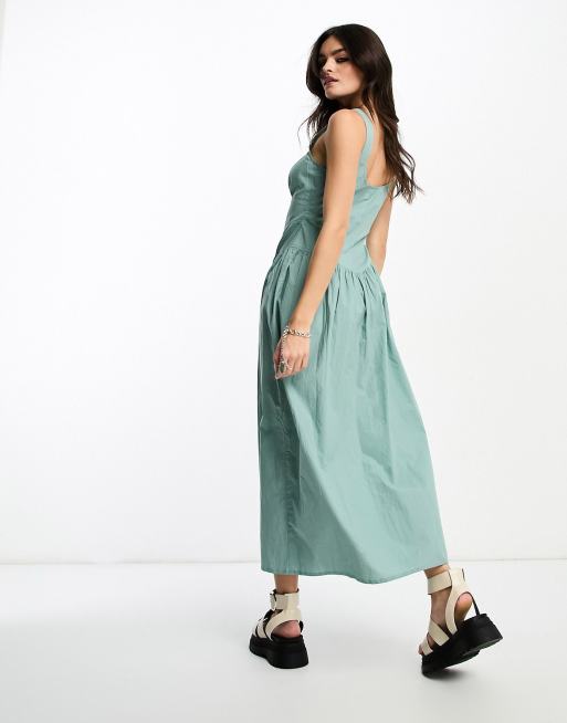 ASOS DESIGN Robe mi longue fonctionnelle a taille basse et fermeture eclair en coton delave Bleu delave Very well made.